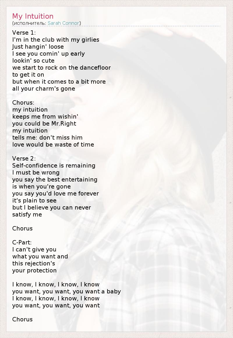 А как ты думаешь, о чем песня "My Intuition" ?