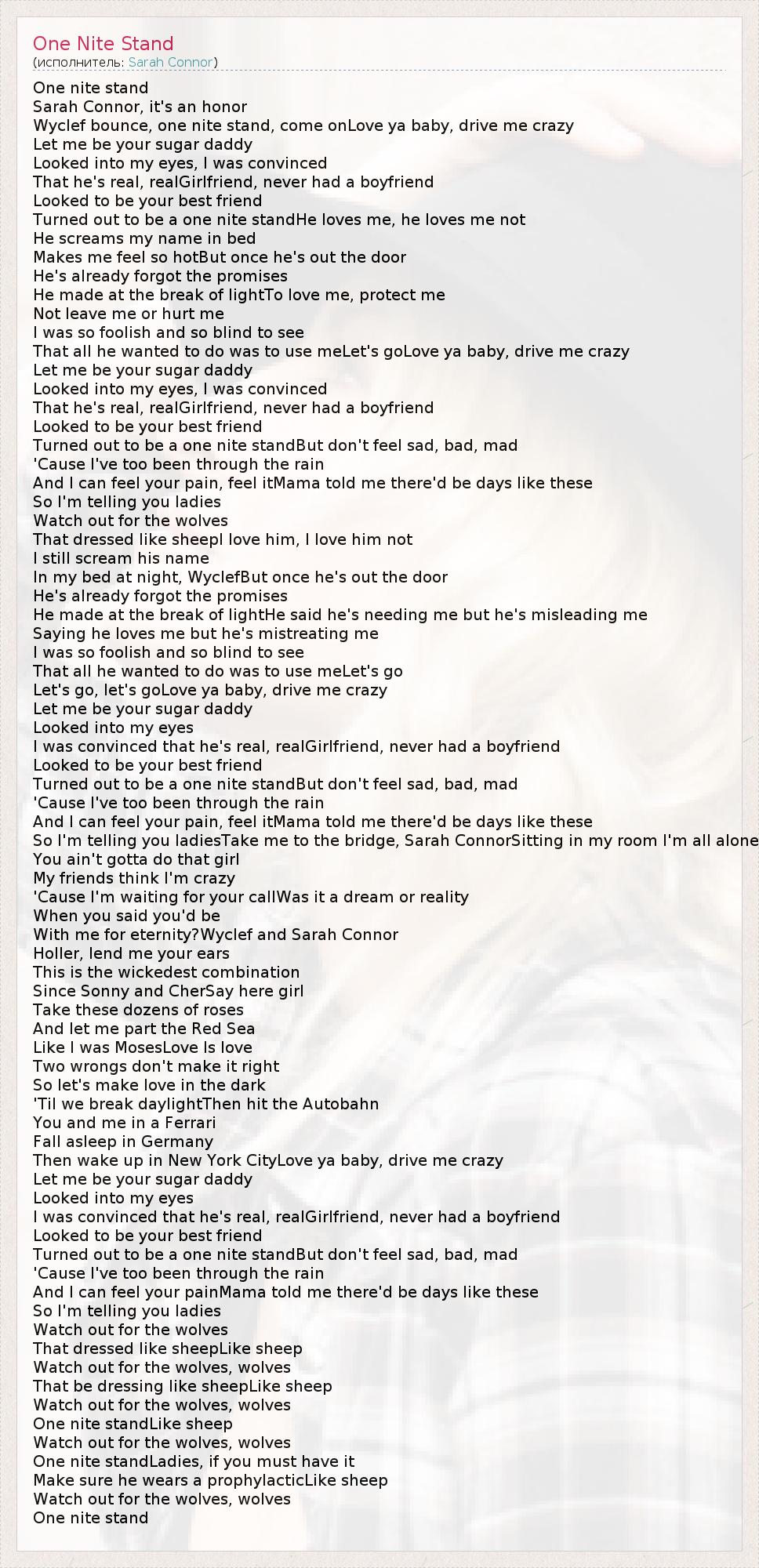 А как ты думаешь, о чем песня "One Nite Stand" ?