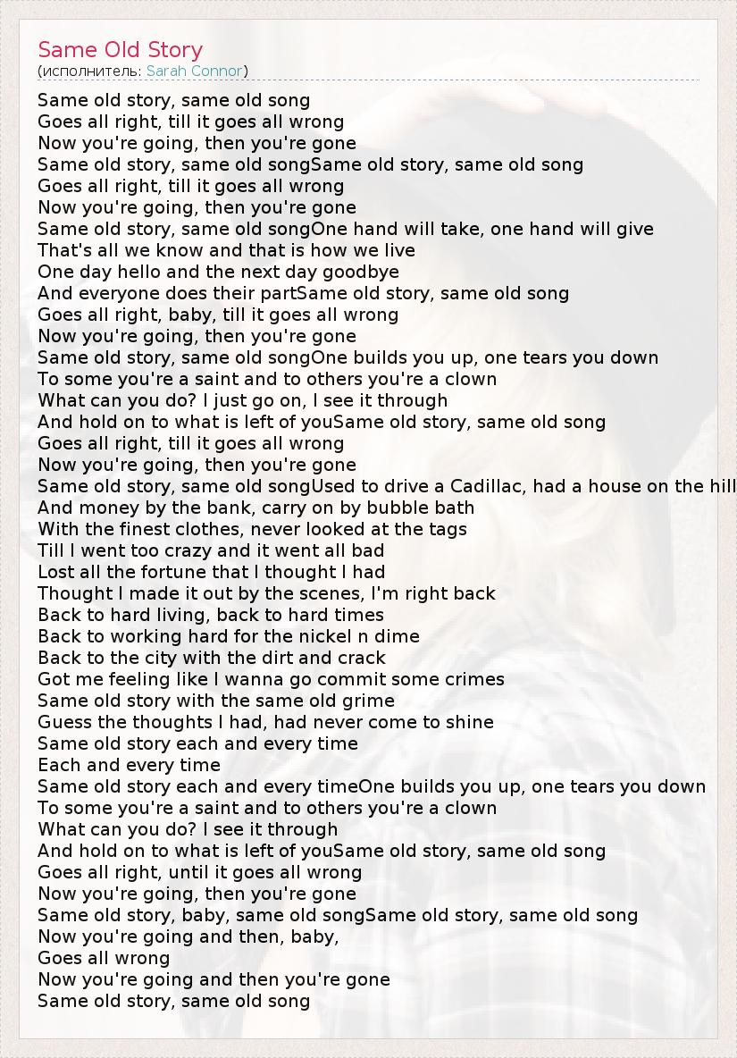 А как ты думаешь, о чем песня "Same Old Story" ?