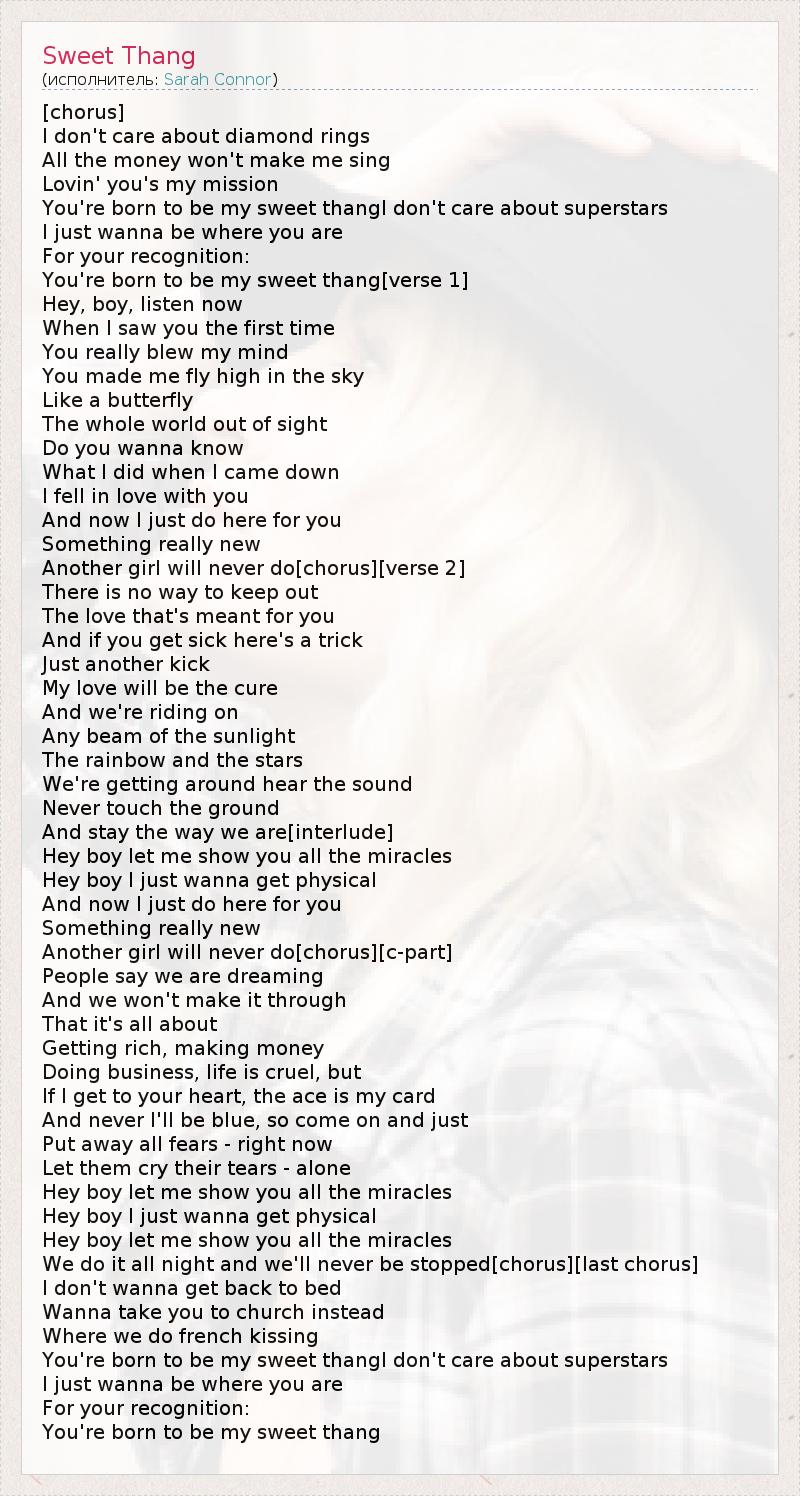 А как ты думаешь, о чем песня "Sweet Thang" ?