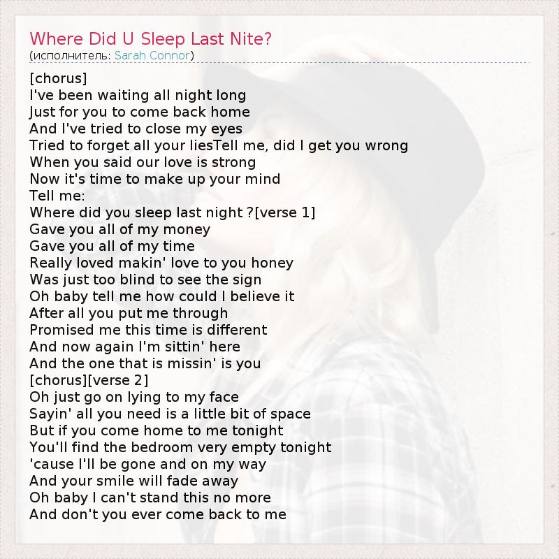 А как ты думаешь, о чем песня "Where Did U Sleep Last Nite?" ?