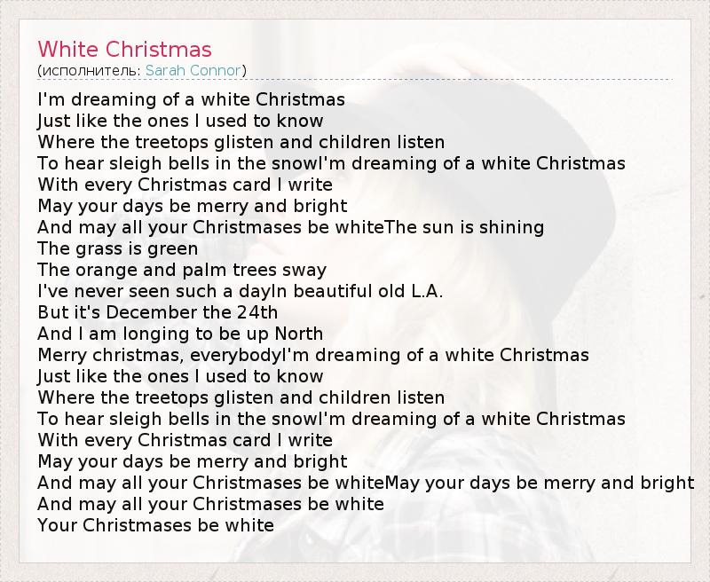 To hear sleigh bells in the snowI'm dreaming of a white Christmas