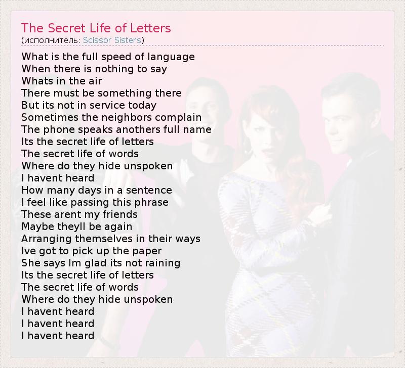 ГлавнаяИсполнителиScissor SistersThe Secret Life of Letters