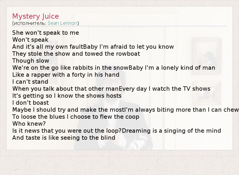 А как ты думаешь, о чем песня "Mystery Juice" ?