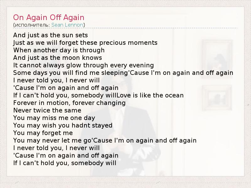 А как ты думаешь, о чем песня "On Again Off Again" ?