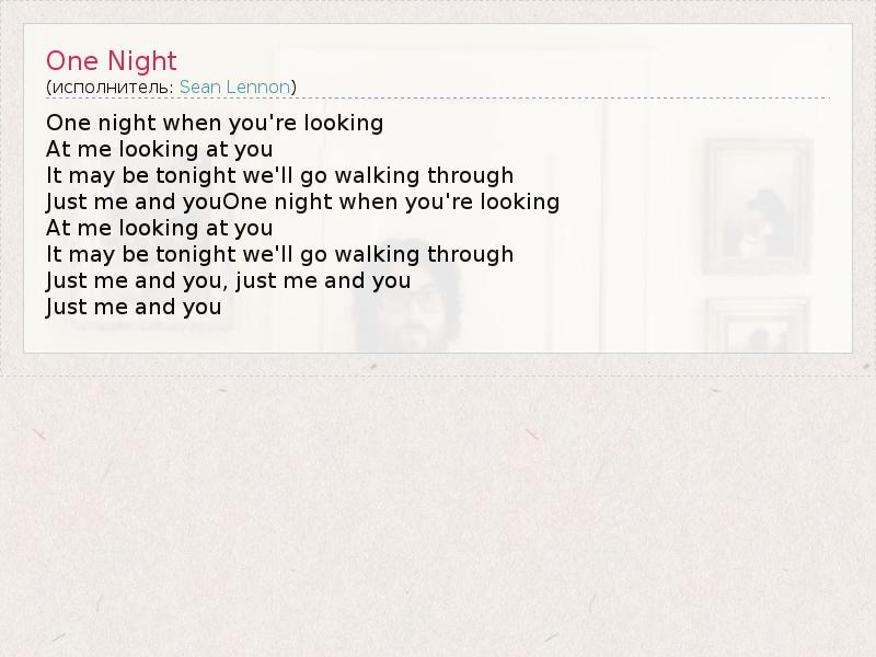 А как ты думаешь, о чем песня "One Night" ?