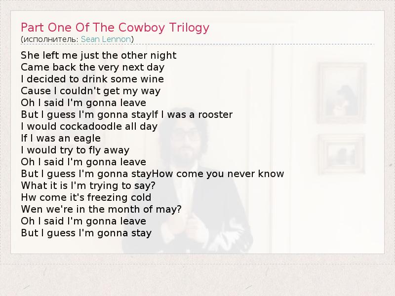 А как ты думаешь, о чем песня "Part One Of The Cowboy Trilogy" ?