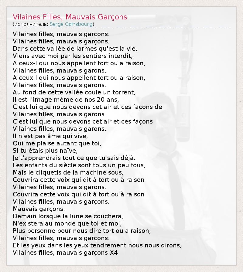 А как ты думаешь, о чем песня "Vilaines Filles, Mauvais Garçons" ?