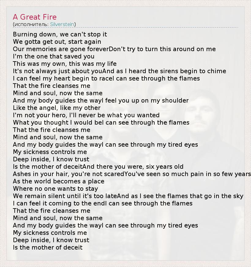 А как ты думаешь, о чем песня "A Great Fire" ?