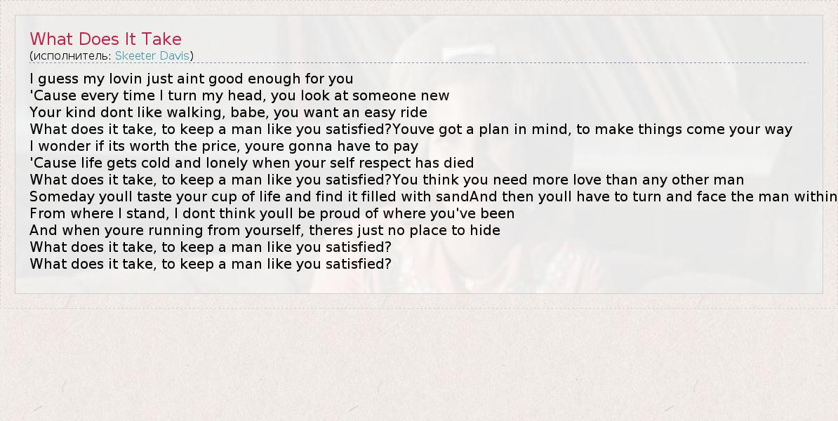 А как ты думаешь, о чем песня "What Does It Take" ?