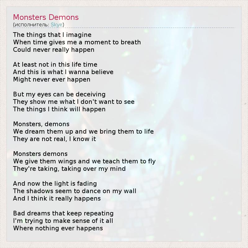 А как ты думаешь, о чем песня "Monsters Demons" ?