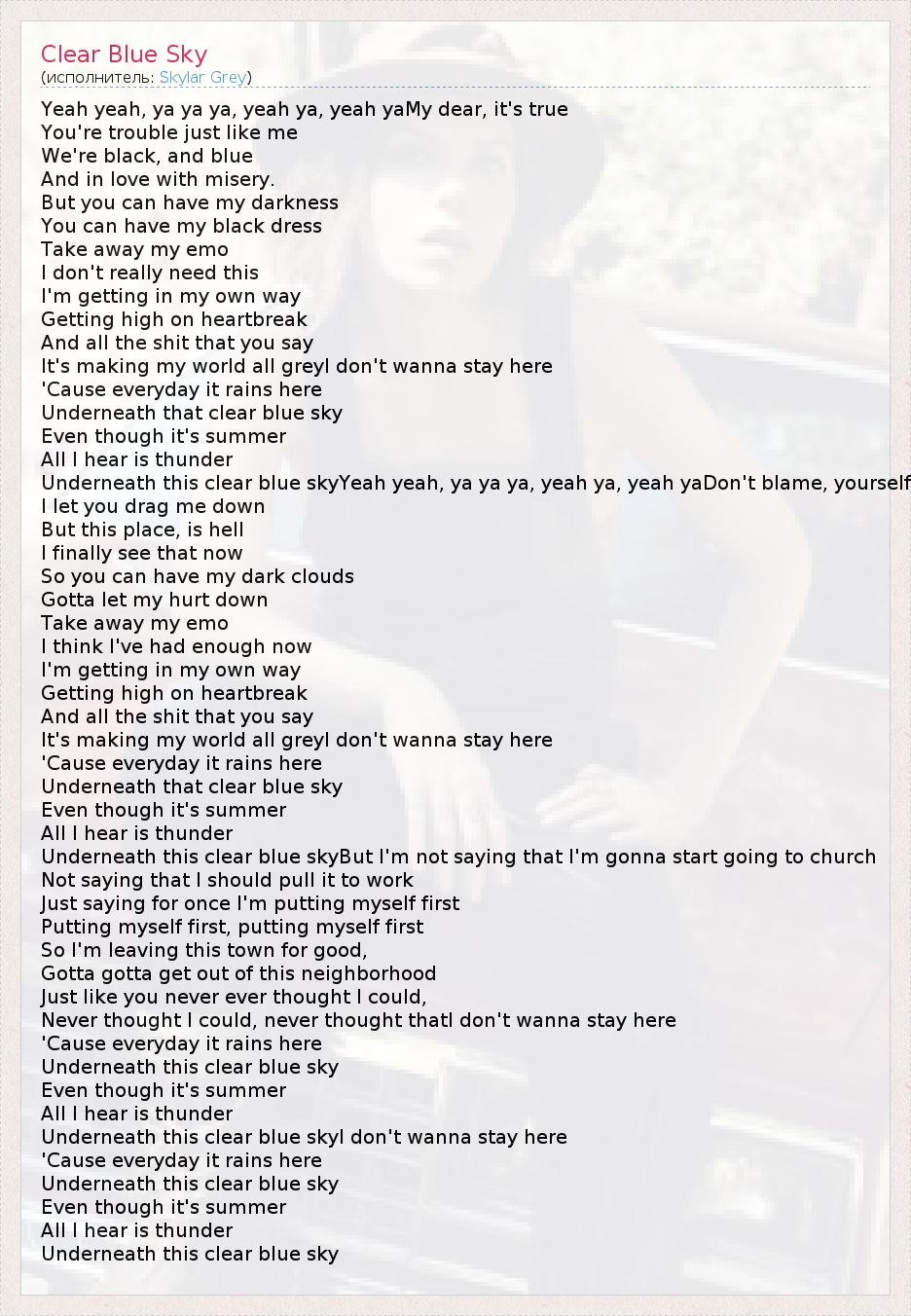 А как ты думаешь, о чем песня "Clear Blue Sky" ?