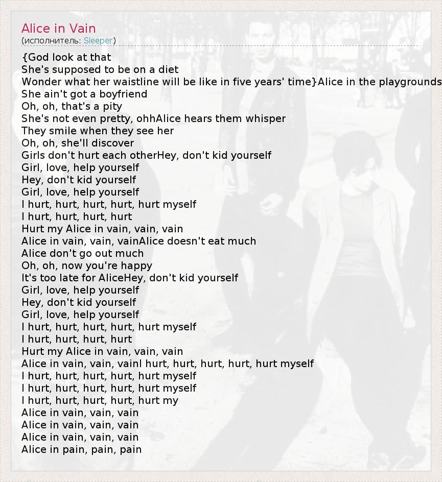 Alice in vain, vain, vainI hurt, hurt, hurt, hurt, hurt myself