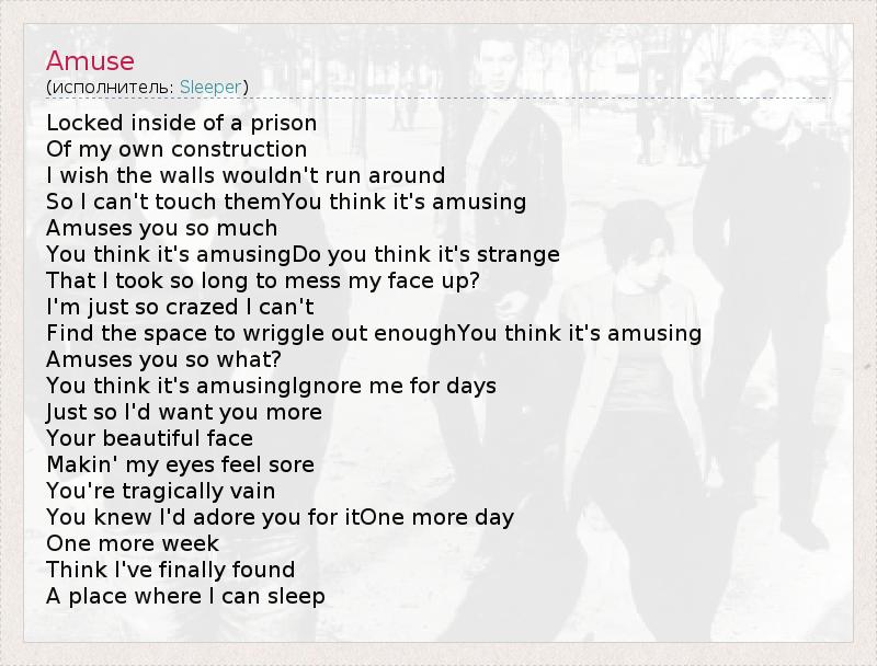 Это интересно:Группа Sleeper образовалась в начале девяностых в Лондоне. В её состав вошли студенты Манчестерского университета - фронтвумен Луиза Венер и гитарист Джон Стюарт, позже к ним присоединились уроженец Сомали басист Диидо Осман и барабанщик Энди... продолжение