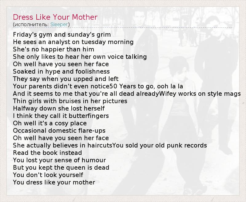А как ты думаешь, о чем песня "Dress Like Your Mother" ?