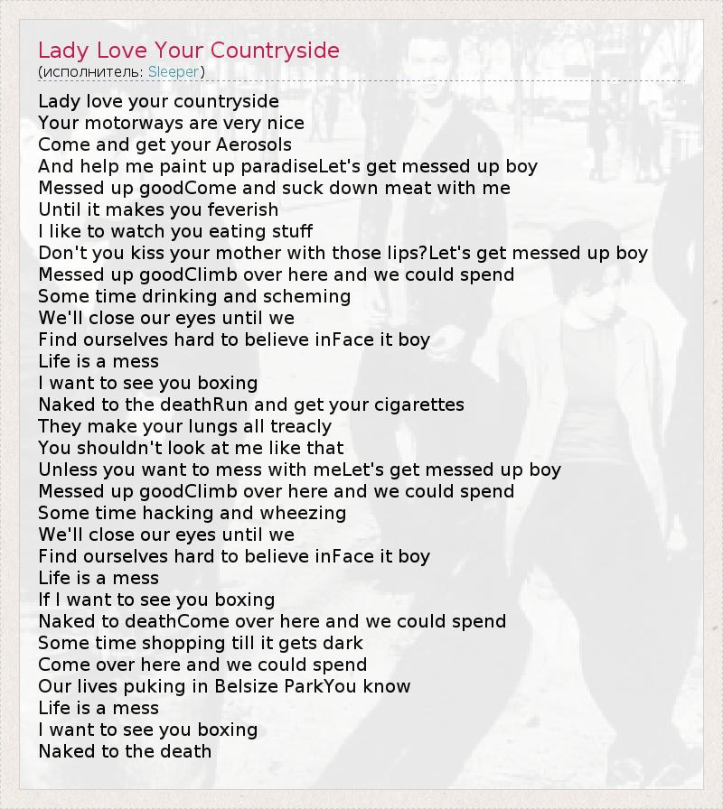 ГлавнаяИсполнителиSleeperLady Love Your Countryside
