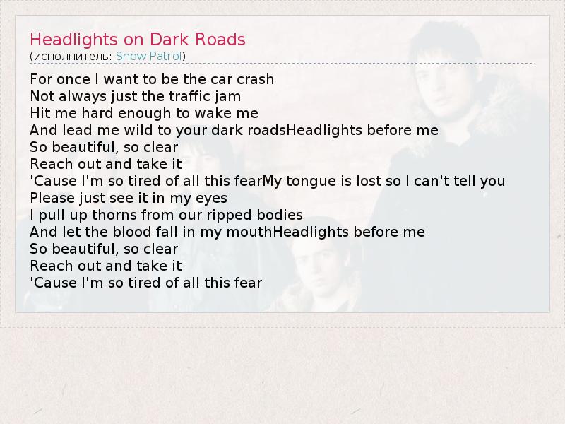 А как ты думаешь, о чем песня "Headlights on Dark Roads" ?
