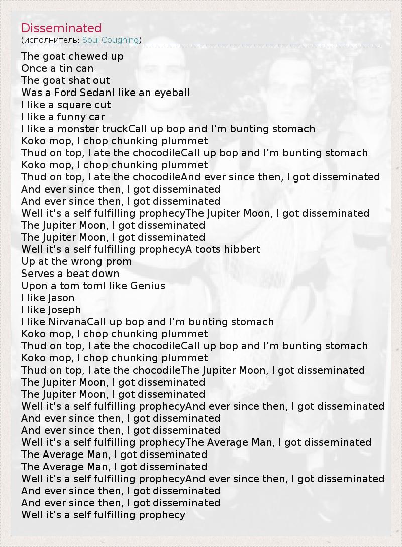 Well it's a self fulfilling prophecyAnd ever since then, I got disseminated