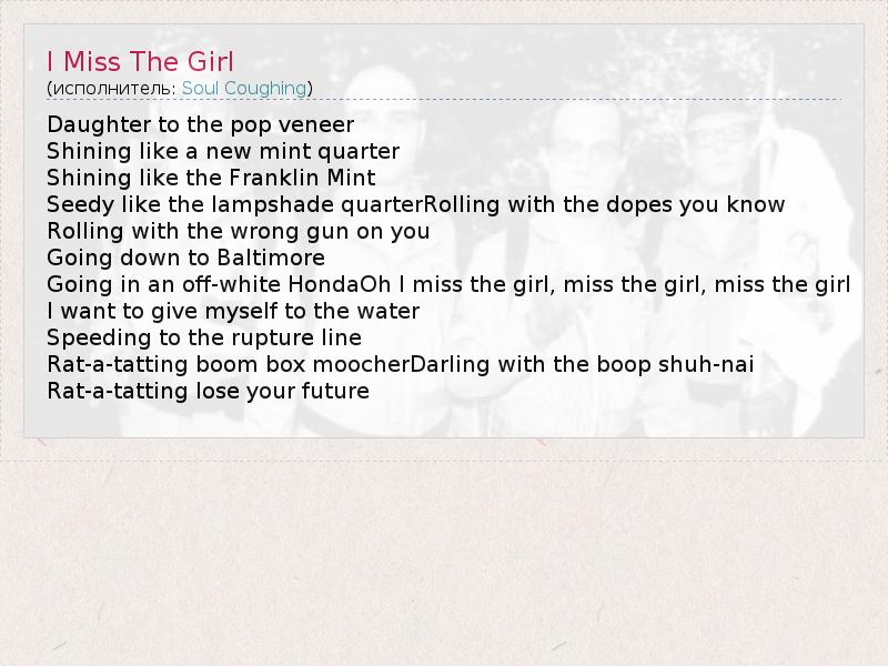 А как ты думаешь, о чем песня "I Miss The Girl" ?