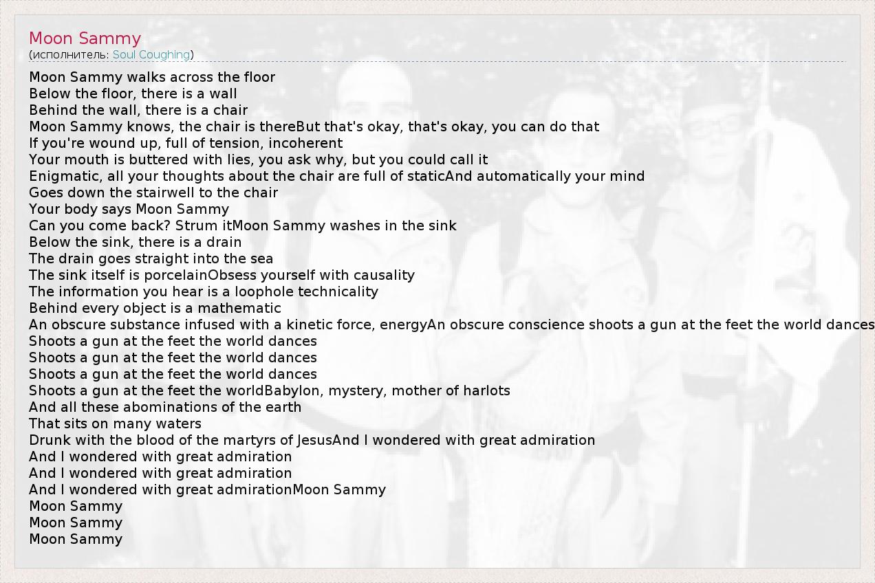 А как ты думаешь, о чем песня "Moon Sammy" ?