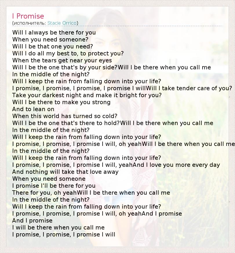 I promise I'll be there for you