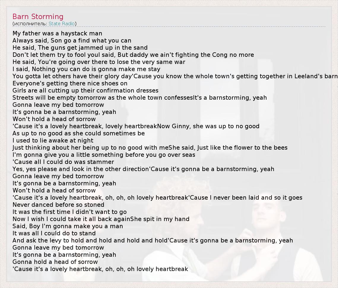 А как ты думаешь, о чем песня "Barn Storming" ?