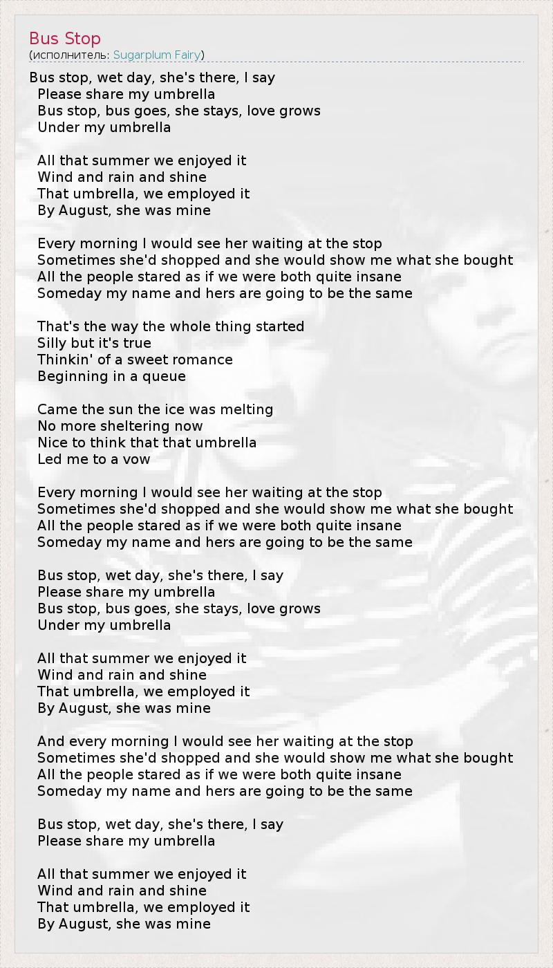 А как ты думаешь, о чем песня "Bus Stop" ?