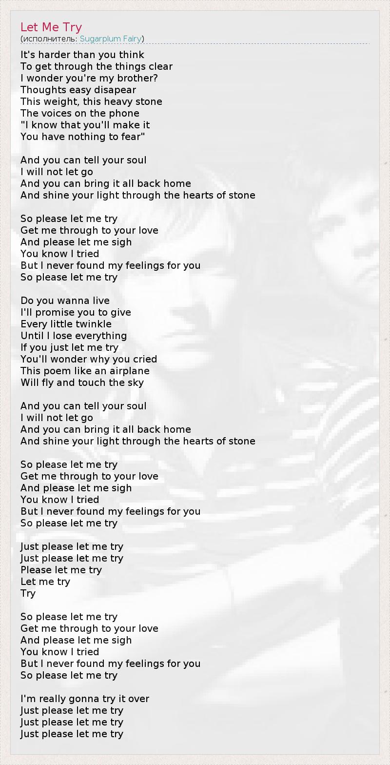 А как ты думаешь, о чем песня "Let Me Try" ?