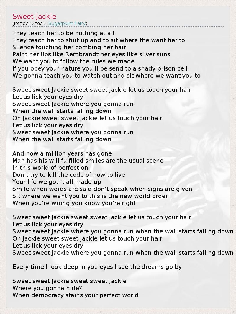 А как ты думаешь, о чем песня "Sweet Jackie" ?