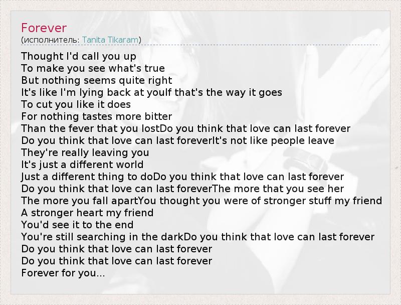 Do you think that love can last forever