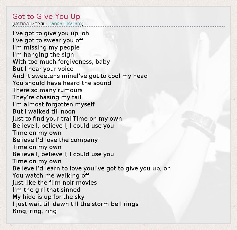 А как ты думаешь, о чем песня "Got to Give You Up" ?