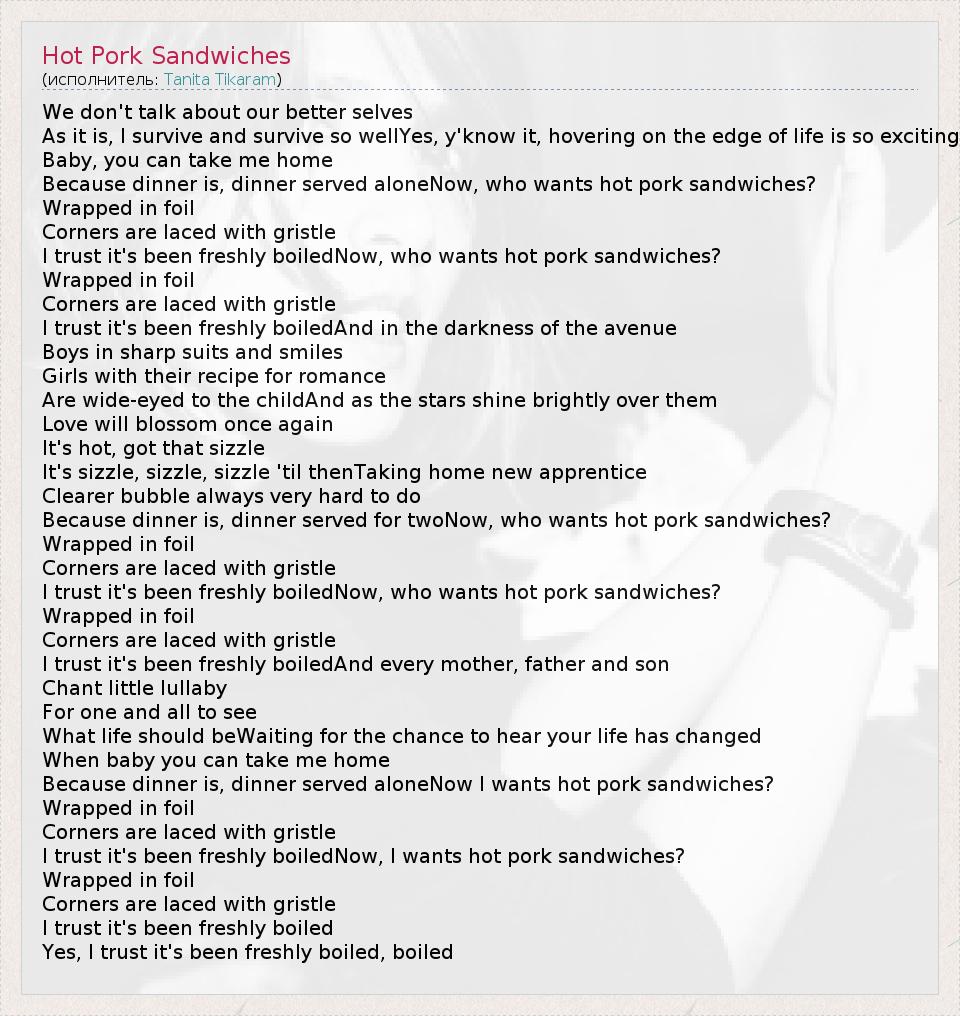 А как ты думаешь, о чем песня "Hot Pork Sandwiches" ?