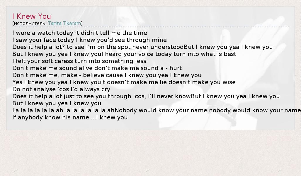 But I knew you yea I knew youI heard your voice today turn into what is best