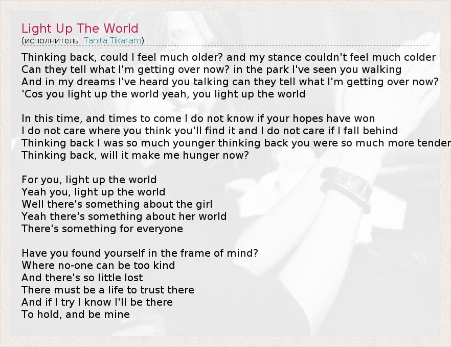 А как ты думаешь, о чем песня "Light Up The World" ?