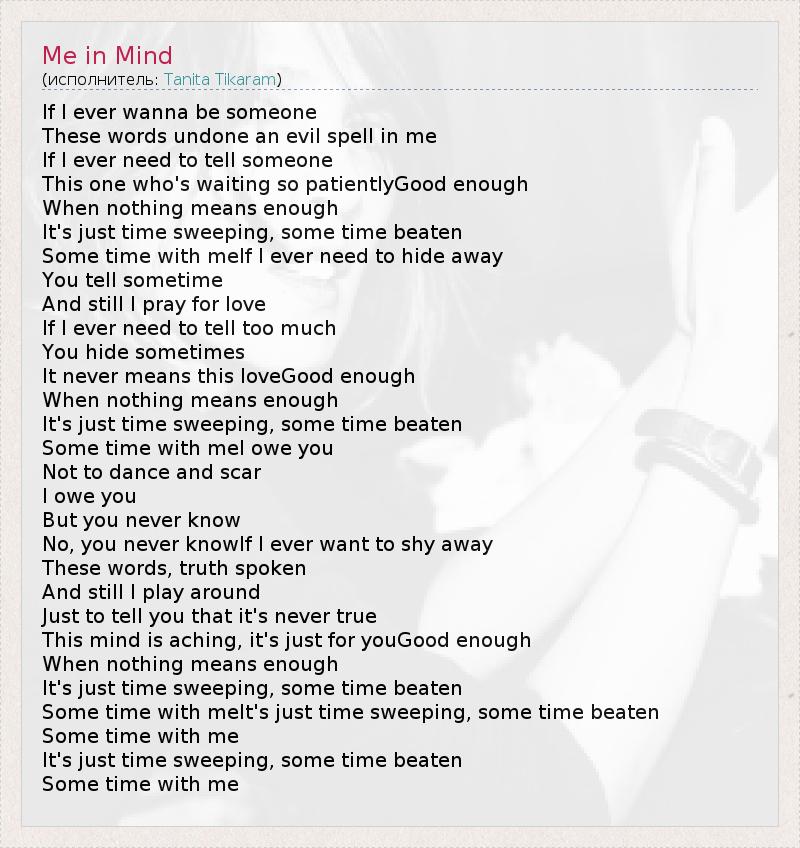 А как ты думаешь, о чем песня "Me in Mind" ?