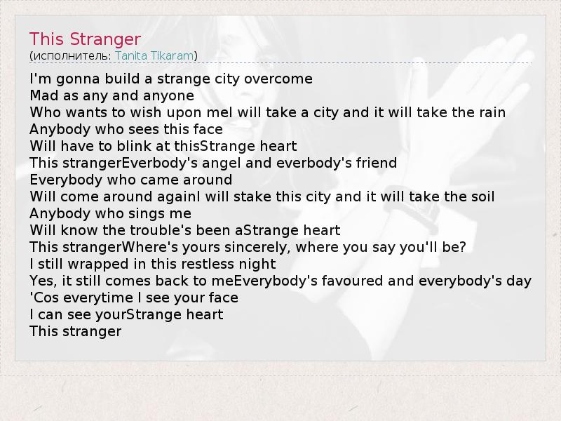 Это интересно:Танита Тикарам (Tanita Tikaram) — английская поп-фолк певица, автор собственных песен. Родилась 12 августа 1969 года в Мюнстере, Германия, в семье индо-фиджийца — британского военного офицера и малайзийки, выросла в Бейзингстоке, Англия. Её брат — актёр Рамон Тикарам.Стиль Таниты Тикарам составляют её низкий грудной голос, акустические инструменты и необычные поэтические тексты.... продолжение