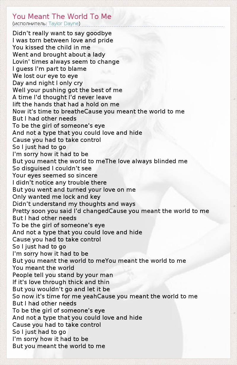 ГлавнаяИсполнителиTaylor DayneYou Meant The World To Me