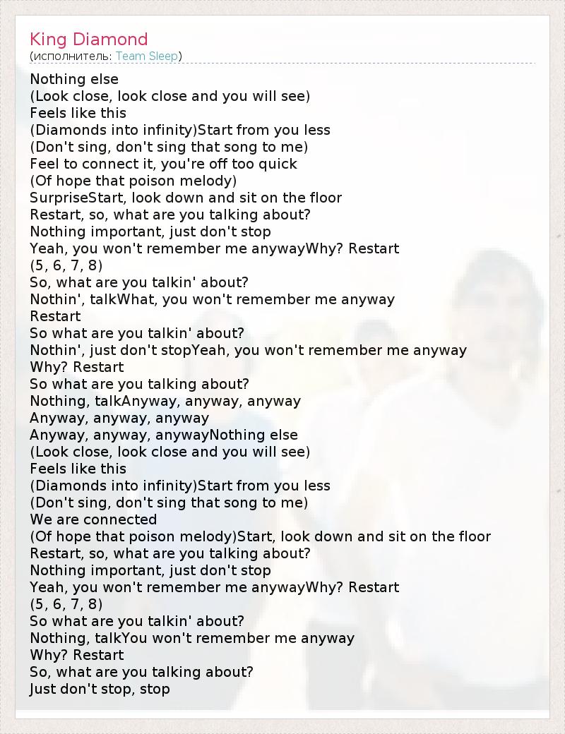 А как ты думаешь, о чем песня "King Diamond" ?