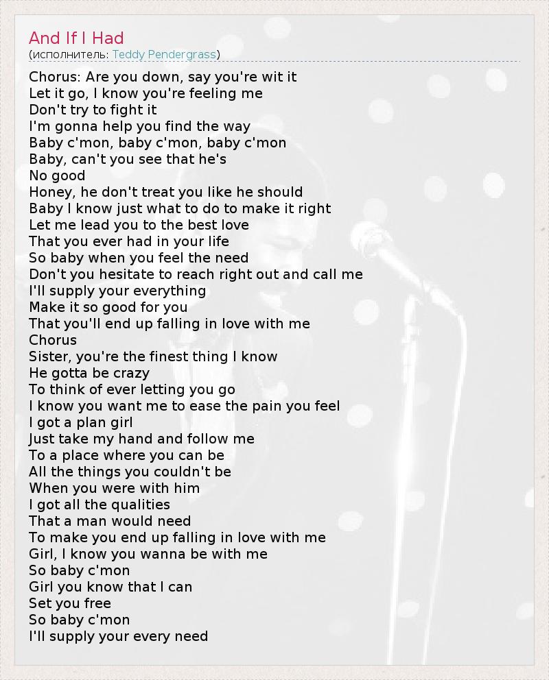 Это интересно:Певец, барабанщик, композитор Тедди Пендерграсс (26 марта 1950 - 13 января 2010).Строгий дед готовил Тедди Пендерграсса к карьере евангелистского священника, однако вмешалась мать, работавшая в популярном в 60-е годы филадельфийском ночном клубе «Скайолз», и приобщила ребенка к светской музыке. В клубе Тедди Пендерграсс учился играть на всех инструментах оркестра, но больше... продолжение