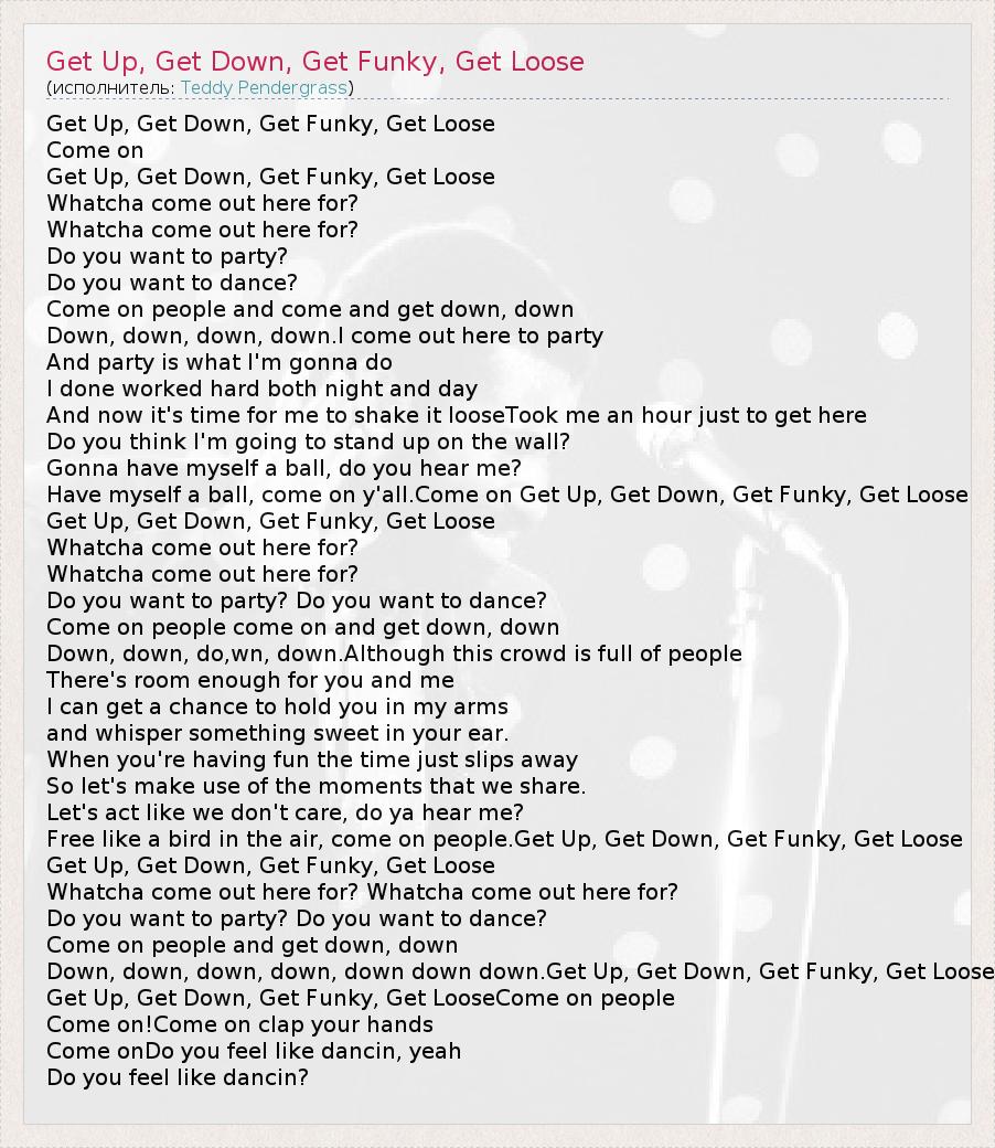 А как ты думаешь, о чем песня "Get Up, Get Down, Get Funky, Get Loose" ?