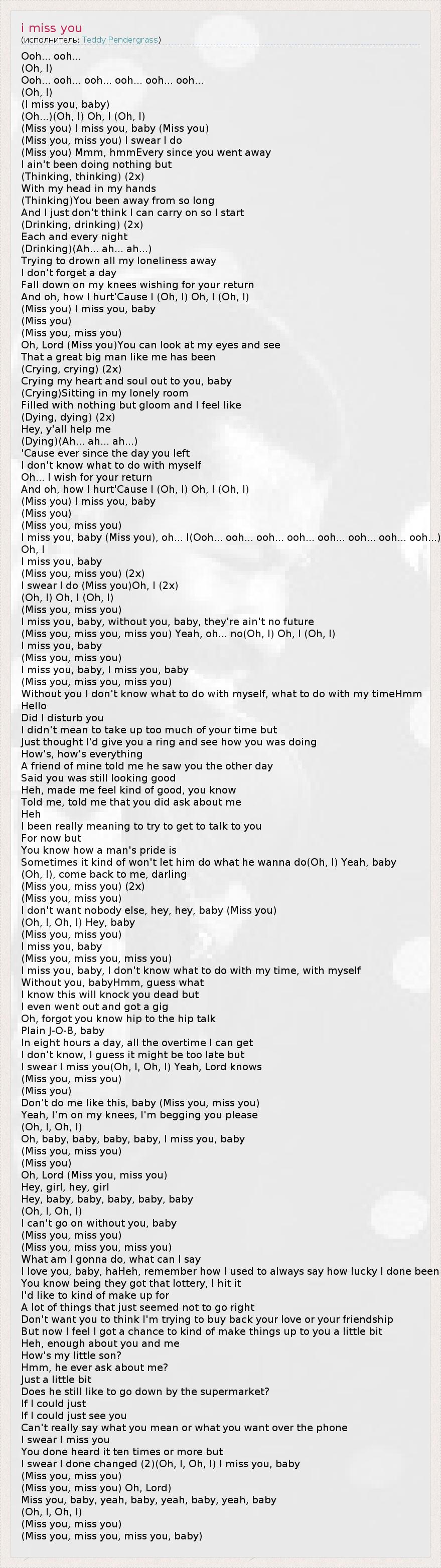 I miss you, baby (Miss you), oh... I(Ooh... ooh... ooh... ooh... ooh... ooh... ooh... ooh...)