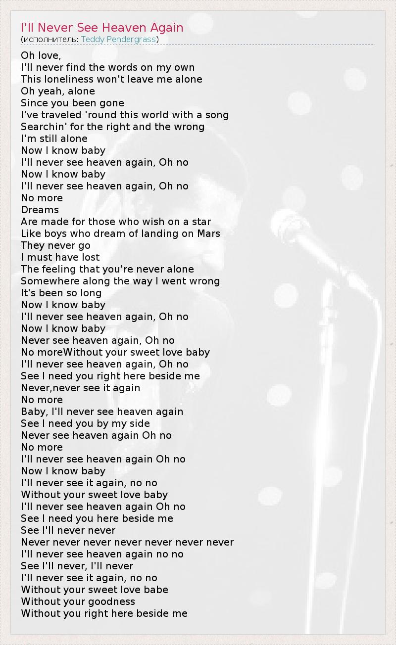 ГлавнаяИсполнителиTeddy PendergrassI'll Never See Heaven Again