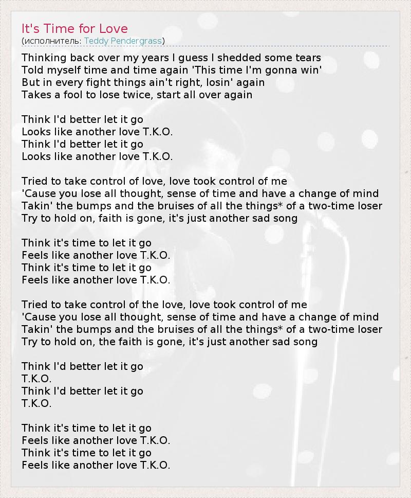 А как ты думаешь, о чем песня "It's Time for Love" ?