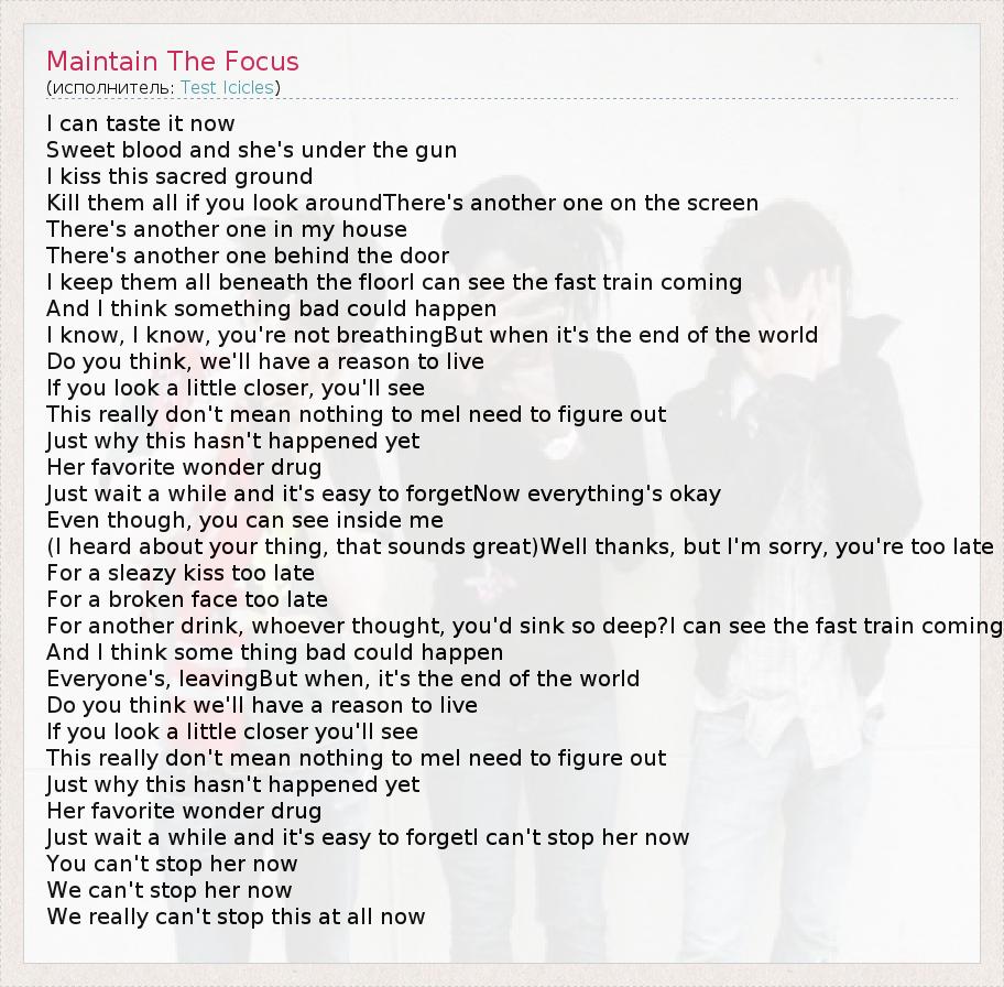 А как ты думаешь, о чем песня "Maintain The Focus" ?