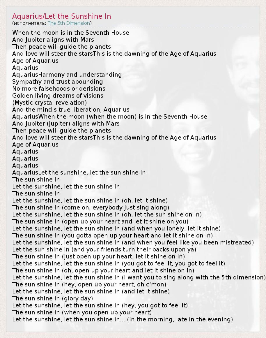 А как ты думаешь, о чем песня "Aquarius/Let the Sunshine In" ?