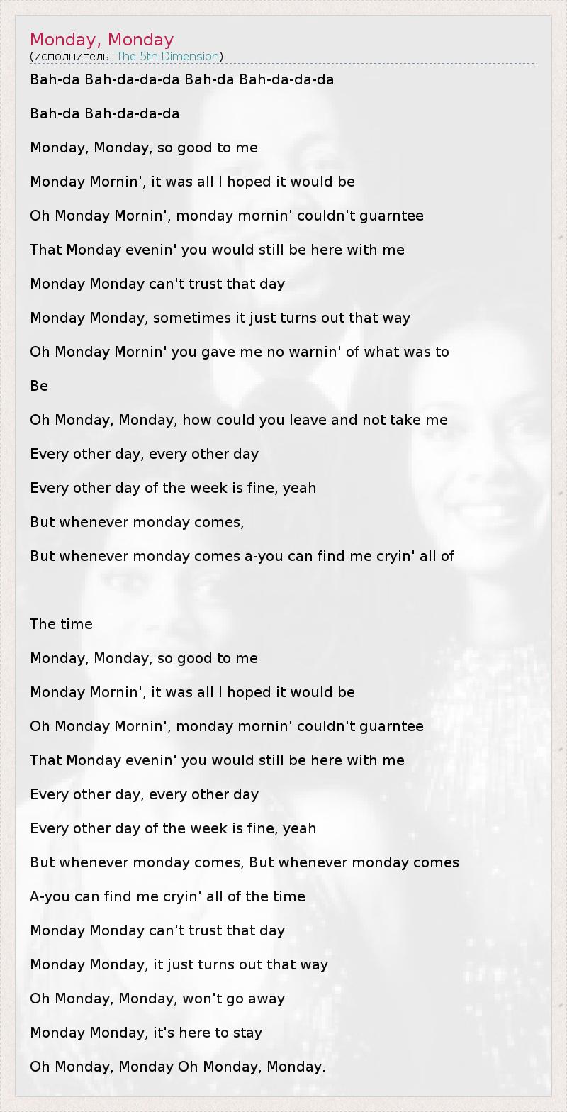 А как ты думаешь, о чем песня "Monday, Monday" ?