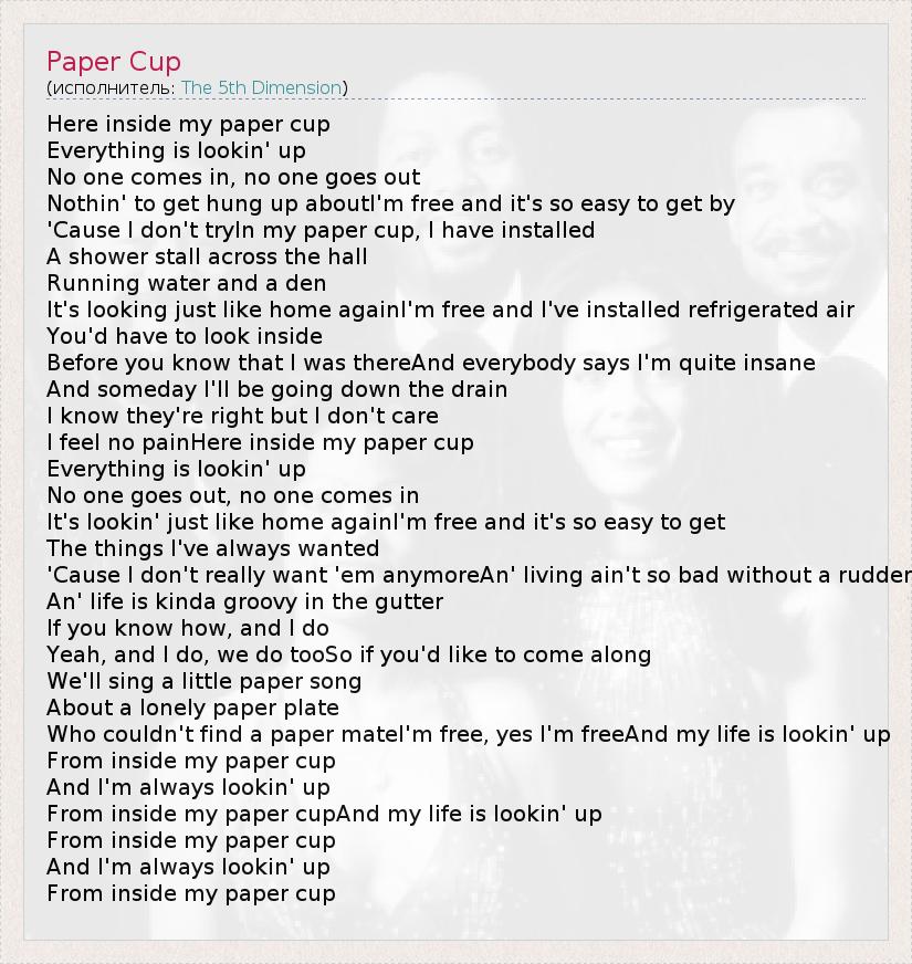А как ты думаешь, о чем песня "Paper Cup" ?