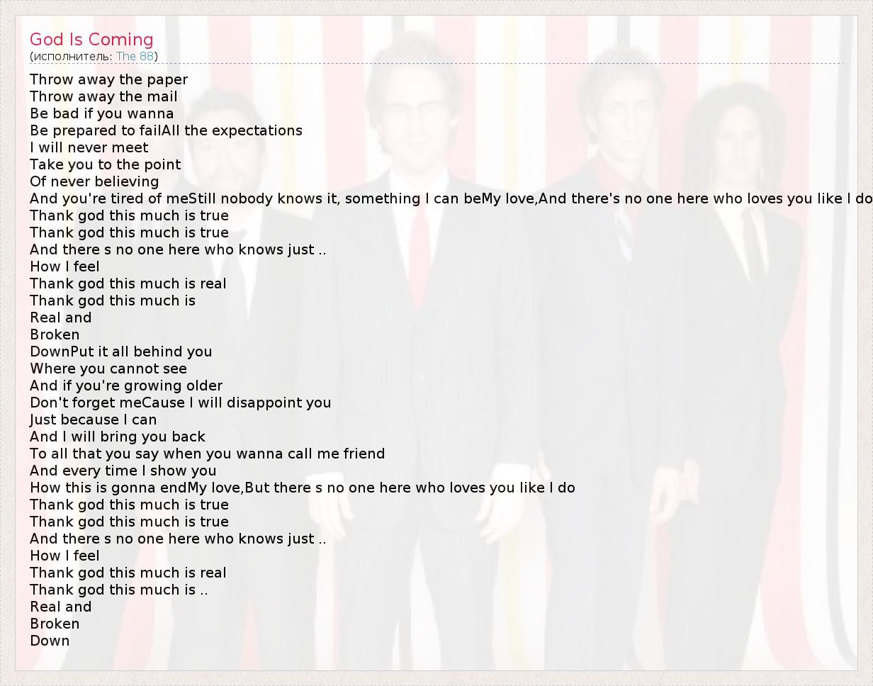 А как ты думаешь, о чем песня "God Is Coming" ?