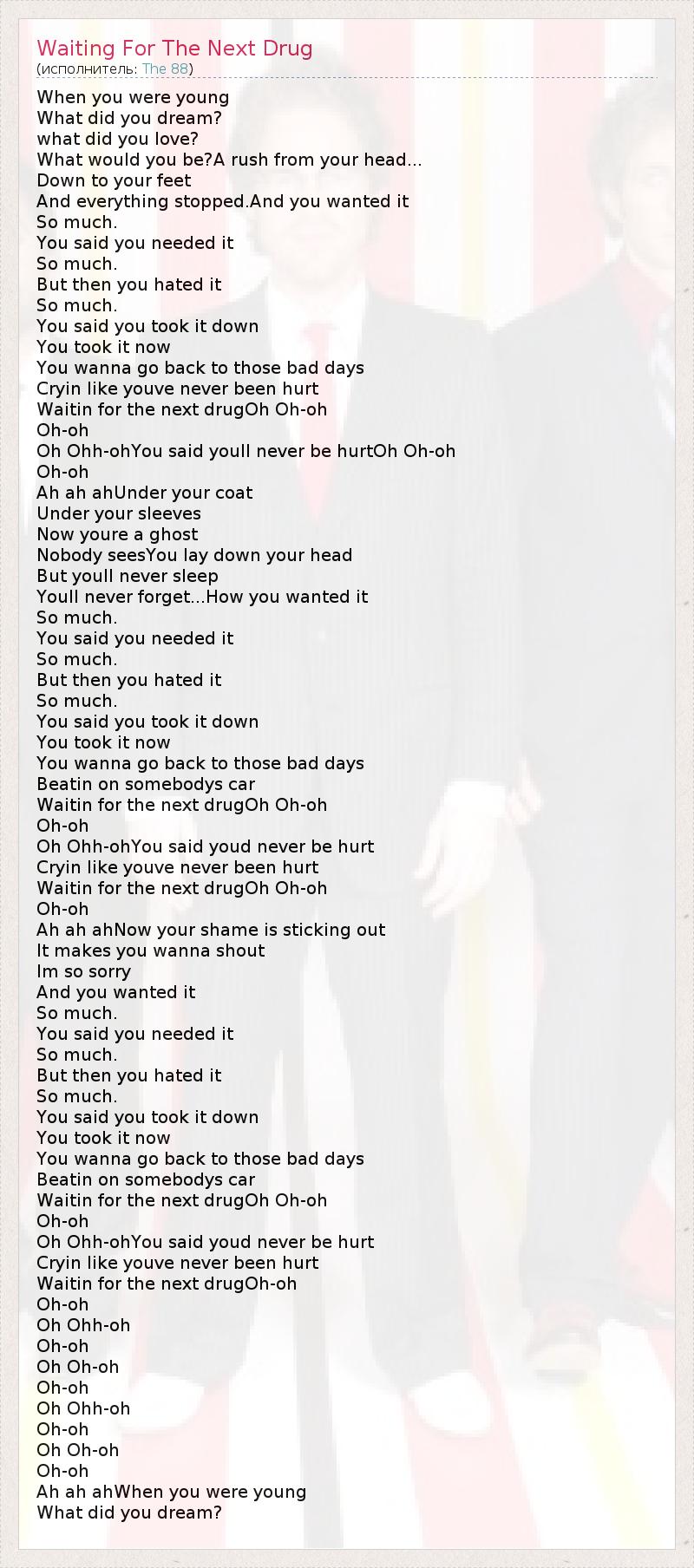 А как ты думаешь, о чем песня "Waiting For The Next Drug" ?