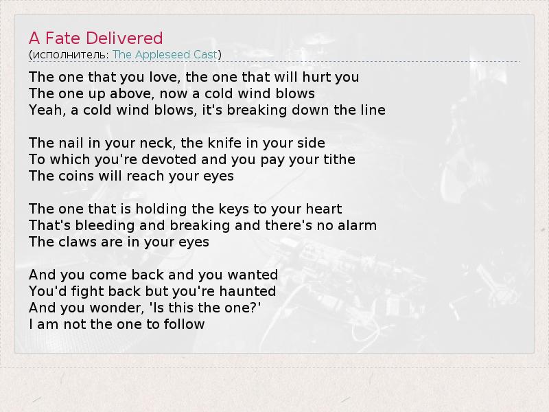 А как ты думаешь, о чем песня "A Fate Delivered" ?